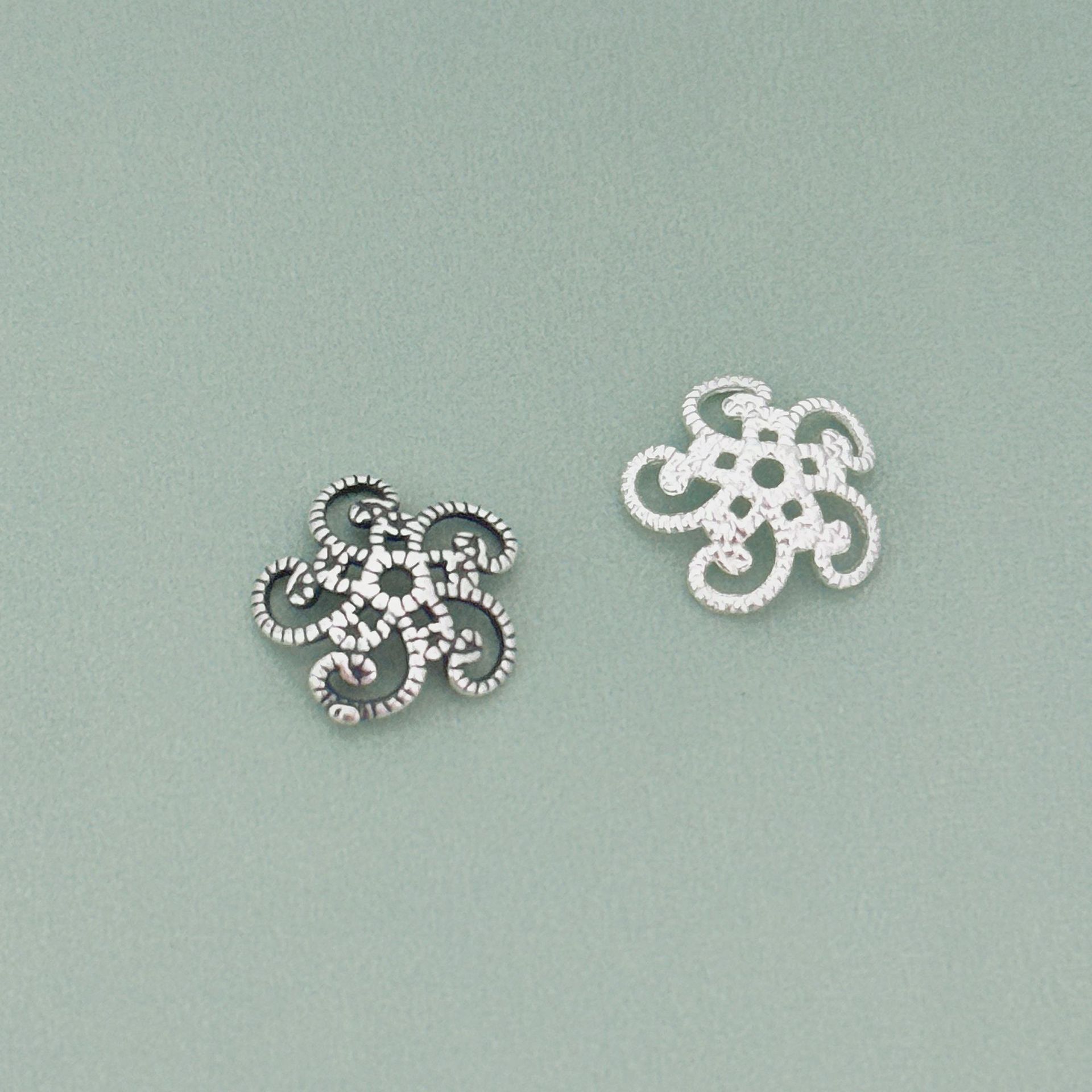 S999足銀3d透かし彫り花托花帽diyブレスレットネックレス文遊珠隔珠銀飾り編み紐部品