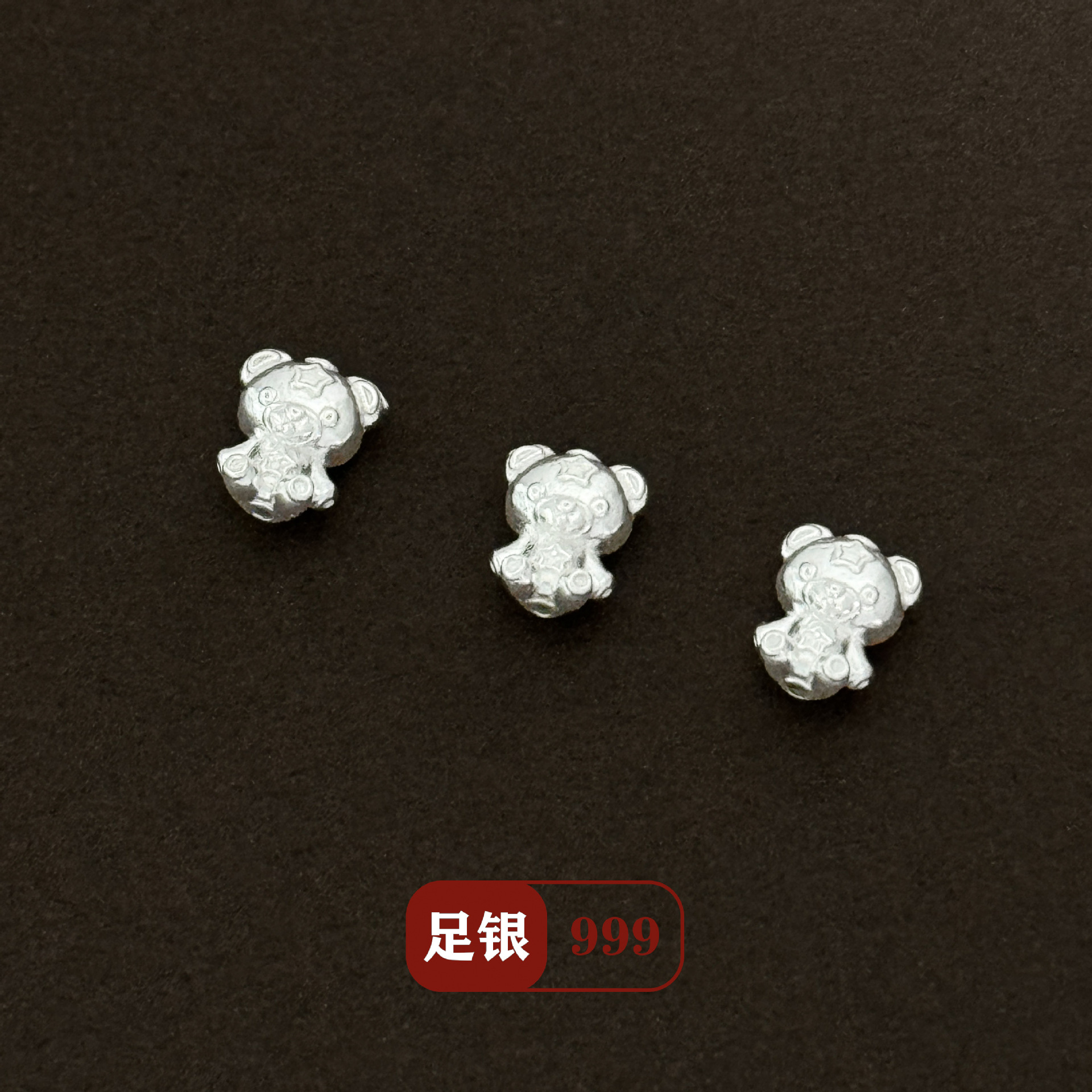 S999足銀3d熊立体隔珠ペンダントdiyブレスレットネックレス数珠銀飾り紐アクセサリー