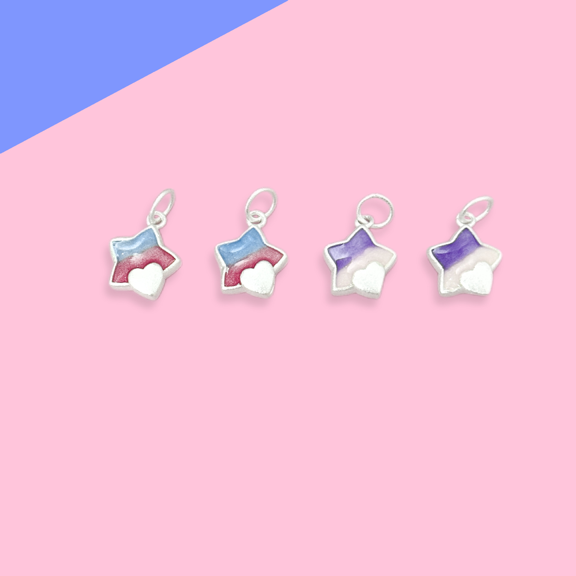 S999足銀滴ゴム星ペンダント愛グラデーションペンダントdiyブレスレットネックレスビーズ銀飾りロープアクセサリー