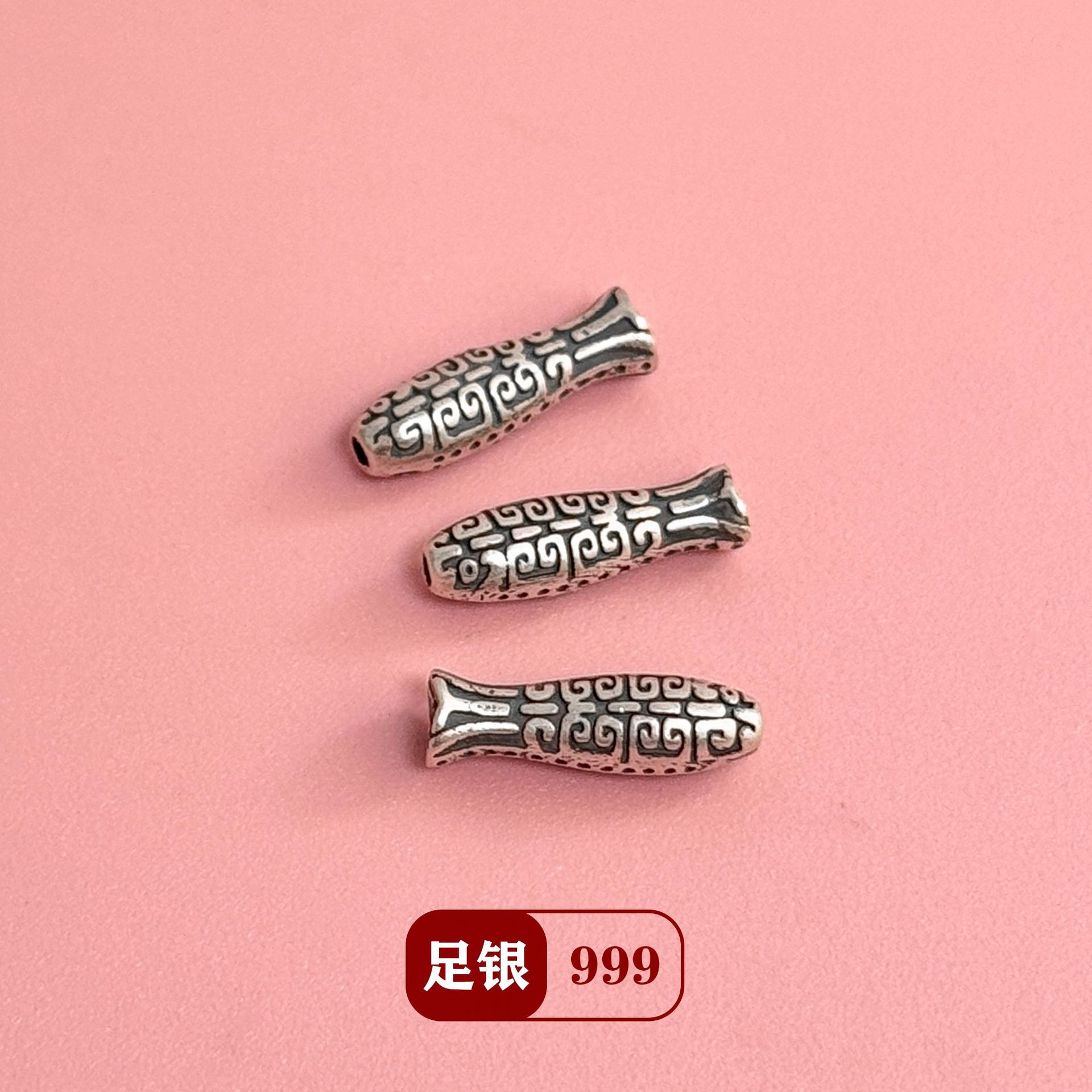 S999 純銀鯉小魚ビーズチベットシルバー中国風ペンダント diy クリスタルブレスレットネックレスビーズロープアクセサリー