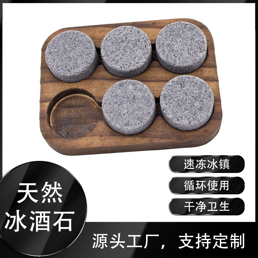 メーカー直供ウイスキー天然石氷酒石6個円形花崗岩氷木托色箱セット