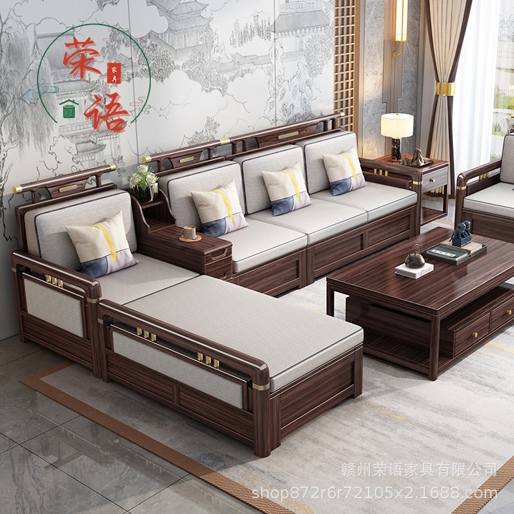 黒胡桃木実木ソファーセット高級別荘大戸型現代シンプル新中国式古典客間家具