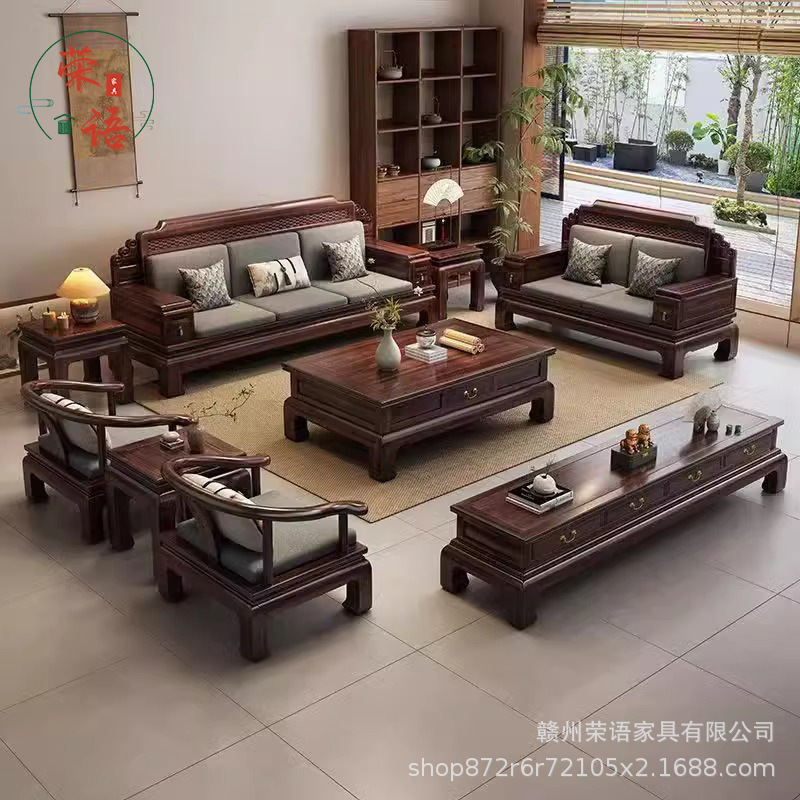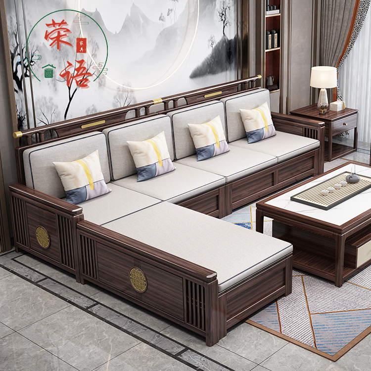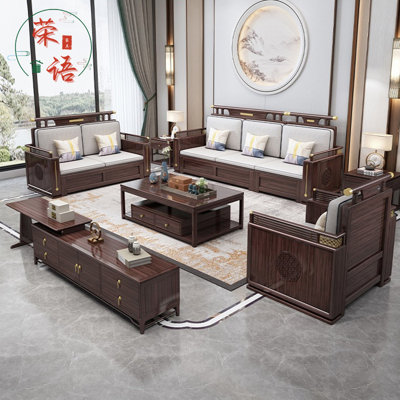 新中国式烏金木実木ソファー現代シンプル禅意客間大小戸型123別荘ソファーセット