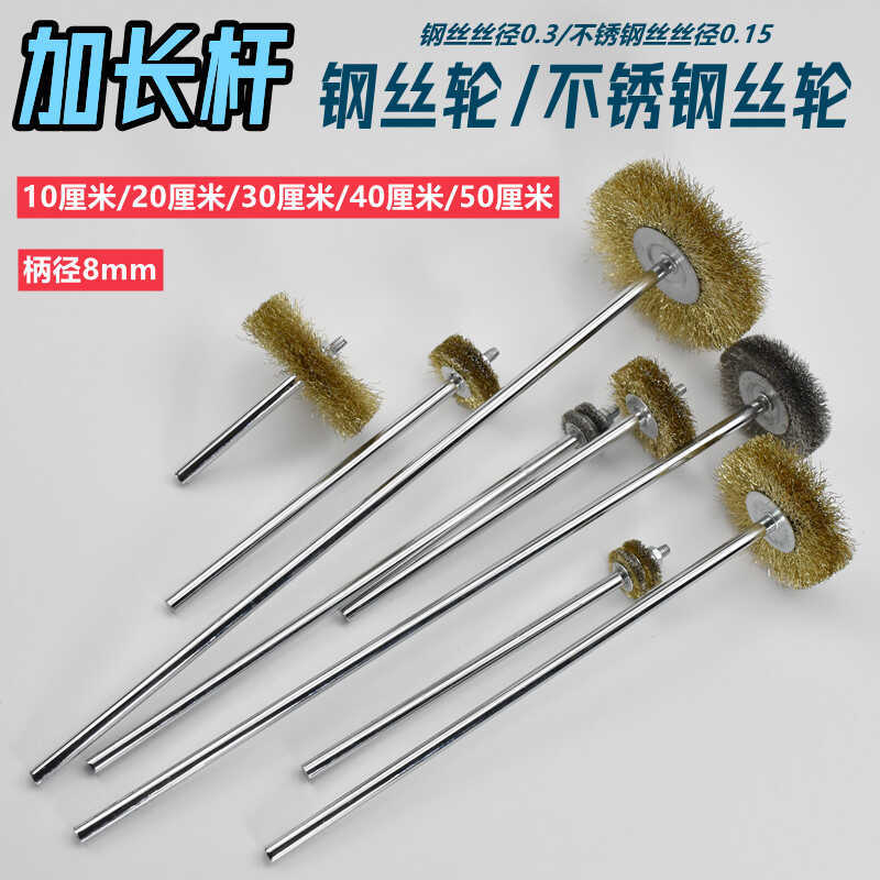 延長棒ワイヤーブラシ電気鋼パイプ錆除去研磨ブラシ内穴研磨バリ除去延長ステンレス鋼ワイヤーホイール