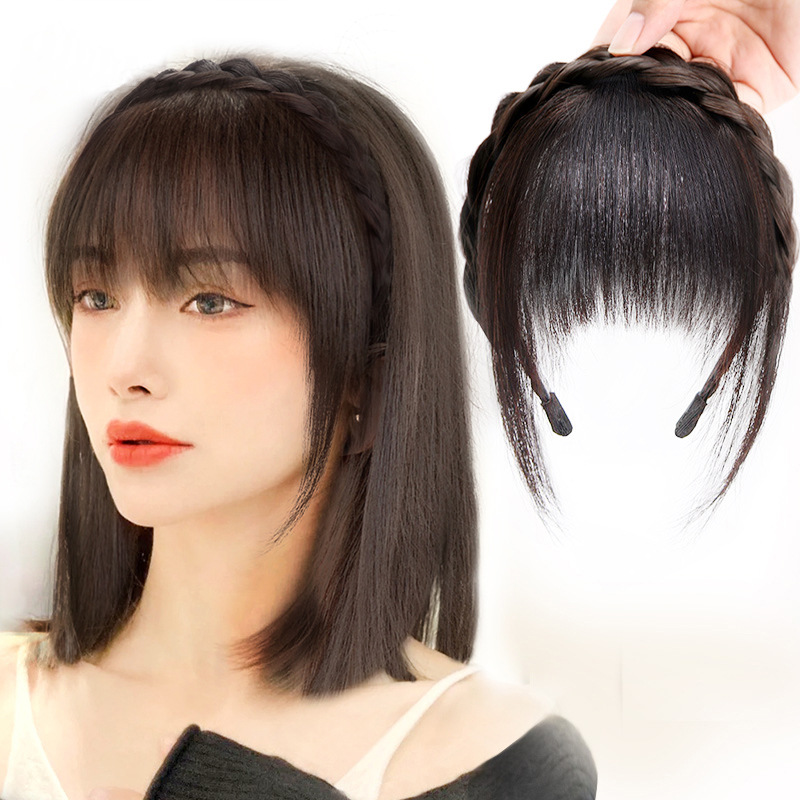 空気の前髪のかつらの女性の本当の髪のおさげのカチューシャの一体の自然な額は白髪の頭上を覆います。
