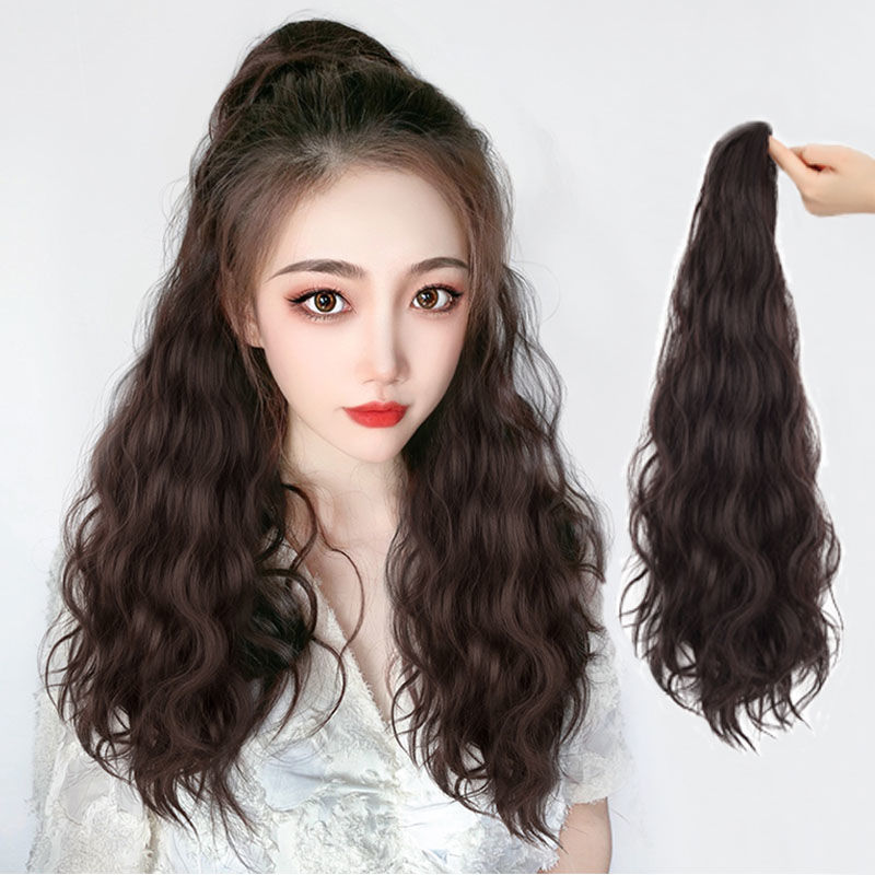 ポニーテールのかつらの女性の長い髪のシミュレーションの髪のバンド式の微巻きのネットの赤い偽のポニーテールはかつらの女性の夏の自然なカールを挟みます。