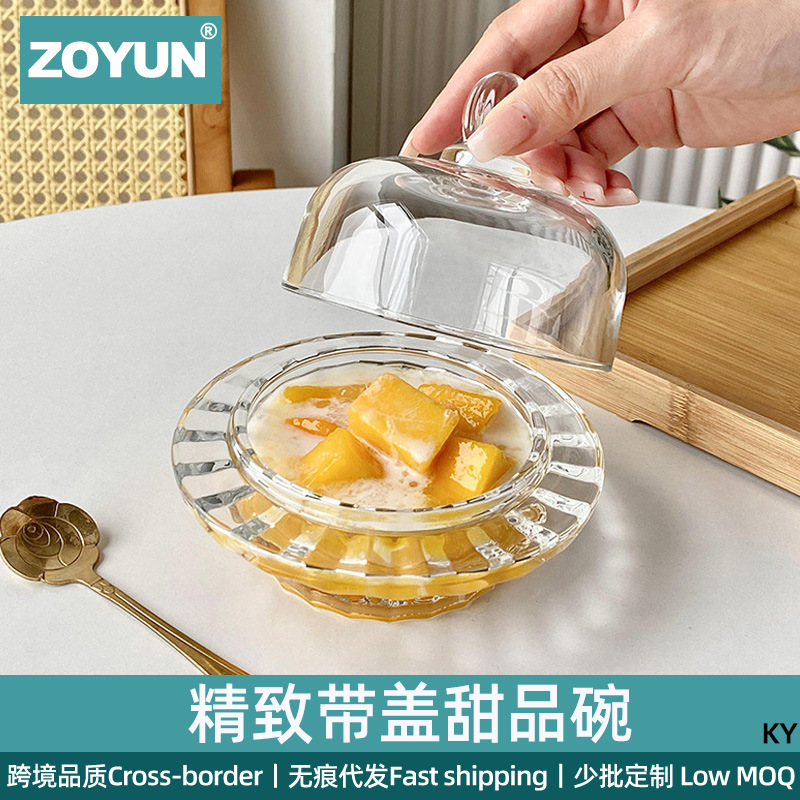 中国式ツバメの巣の碗の銀の耳の杯のガラスは蓋の透明で精巧で高級な家庭の果物のお菓子のデザートの碗の小さいスープの杯を持ちます。