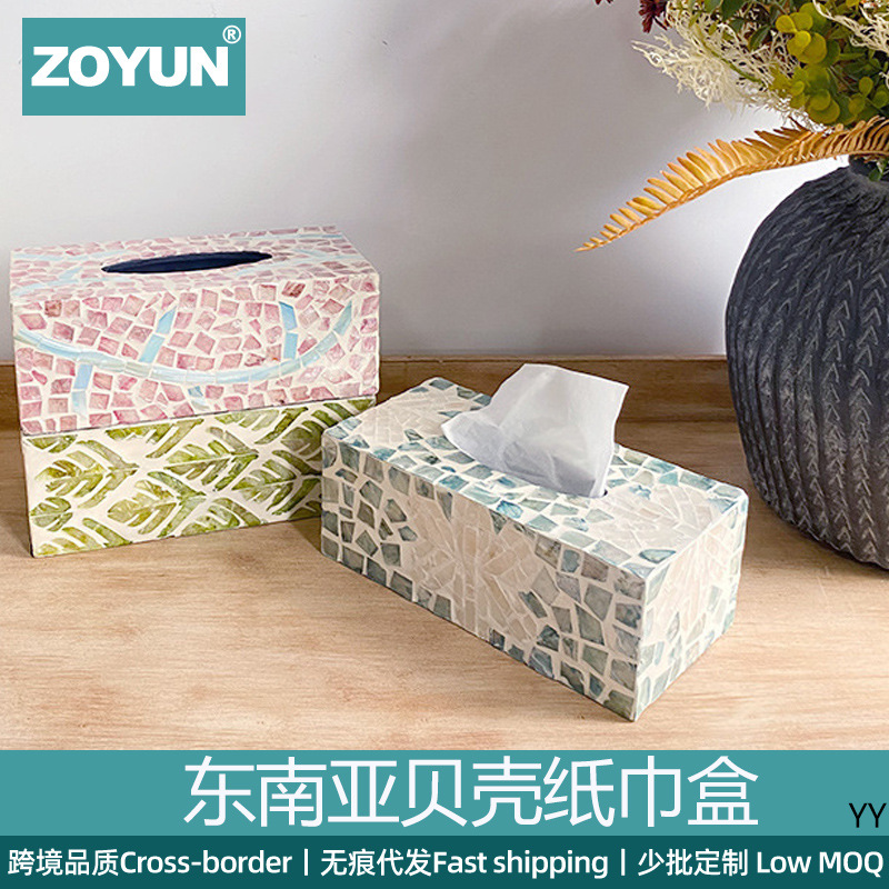東南アジアの貝殻のティッシュの箱のホテルの会の民宿の軽い豪華な色の貝のナプキンの紙は紙の箱のリモコンの収納箱を引き出します。