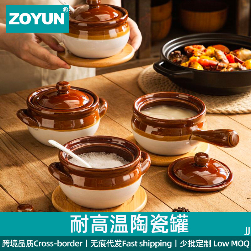 両耳陶磁器の豚油タンクは高温に耐えて水を隔てて鍋のスープの鍋の家庭の塩の缶の油をあけて辛い子の缶の単独でご飯の碗を蒸します。