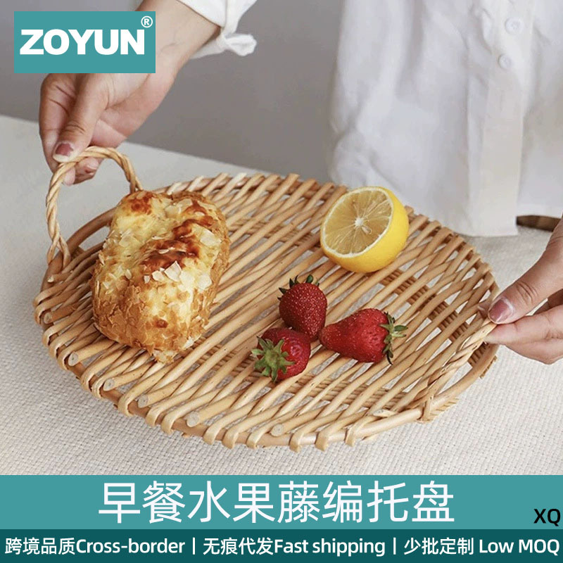 小食皿お茶果物かご模造藤編トレー家庭用リビングケーキパン竹編かご新年ドライフルーツ皿