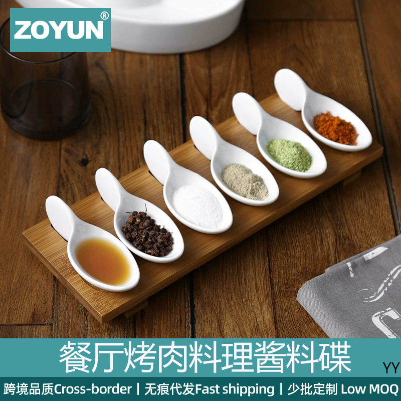 和風陶器ディップソーサー ホテルレストラン レストラン バーベキュー風味ソーサー 調味料ソーサー ソースボウル 竹製トレイ付き