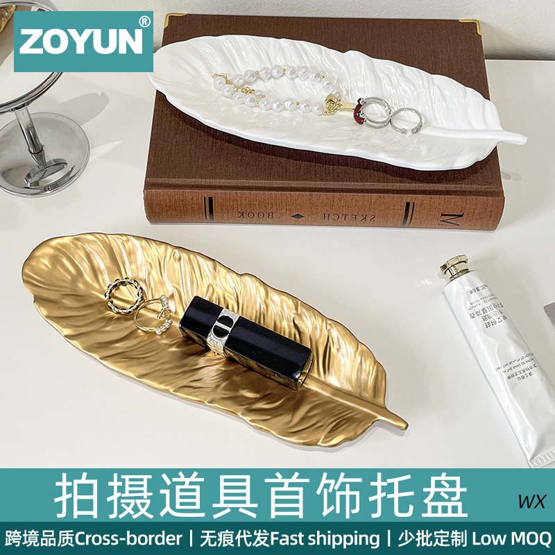 金色のジュエリートレイ口紅指輪のブレスレット陳列展示撮影道具羽毛中東アクセサリー収納盤