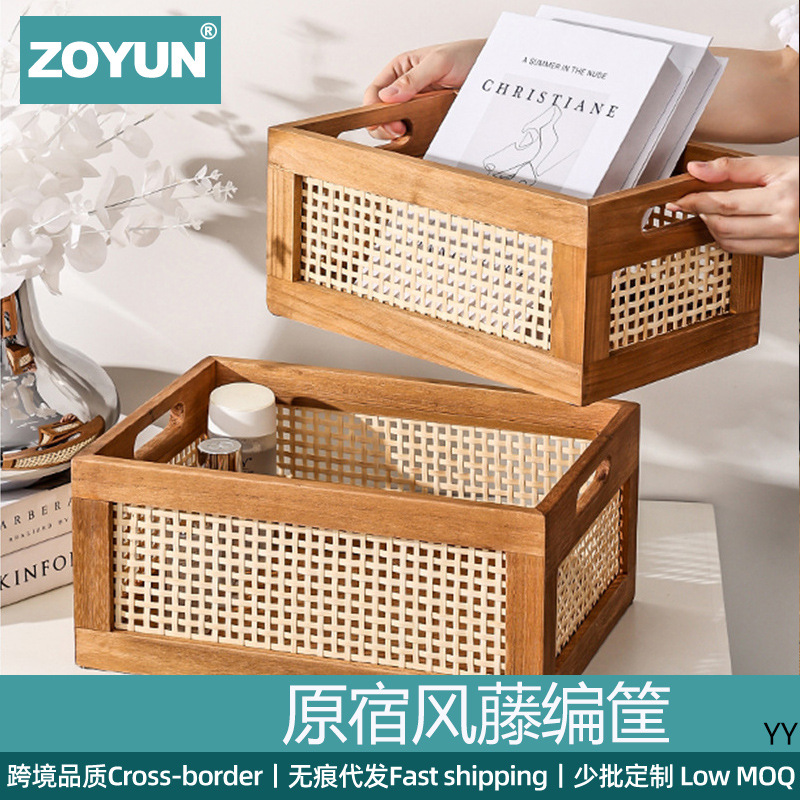 日本式原宿風藤編み収納かごスナックキー化粧品収納ボックス収納かごデスクトップ雑物収納かご