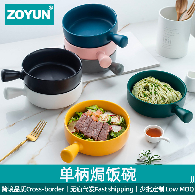韓国ins風クリーム色食器焼きボウルセラミックハンドルスープボウルカップラーメンナット粉家庭用サラダグラタンボウル