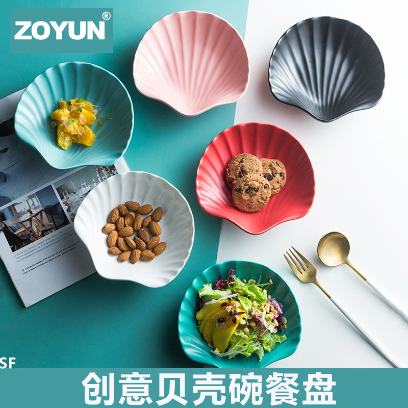 創意貝殻碗北欧風陶磁器朝食皿つや消し色釉碗皿皿レストランデザート皿小食サラダ皿