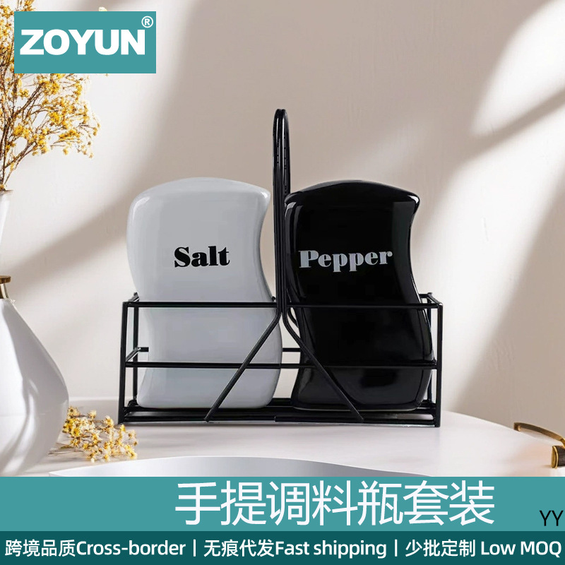 ポータブル調味料瓶コンビネーションスプリンクラーボトル黒と白のヨーロピアンスタイルホテルレストランセラミック塩瓶コショウ瓶調味料瓶
