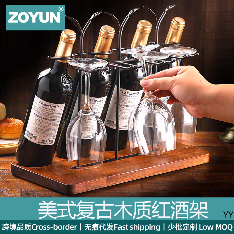 アメリカのレトロな木製のワインラックの鉄製ワイングラスの一体機の高足カップの逆掛けの軽い豪華なワインラックの置物