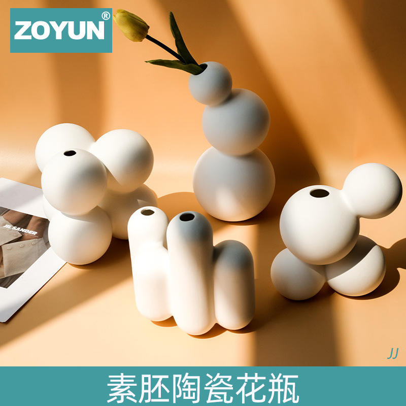軽い豪華な素胚の太い陶磁器の乾いた花の花瓶の置物の客間の生け花の服装の店の暗い寂しい風の民宿のデスクトップの装飾品
