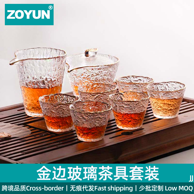 囲炉氷茶金辺茶器セット日本式耐熱氷露ハンマーガラス透明蓋碗工夫泡茶セット