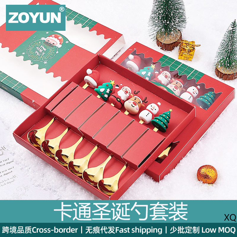 趣味漫画クリスマススプーンセットデザートスプーン果物フォークins風クリスマス年会プレゼントステンレススプーン