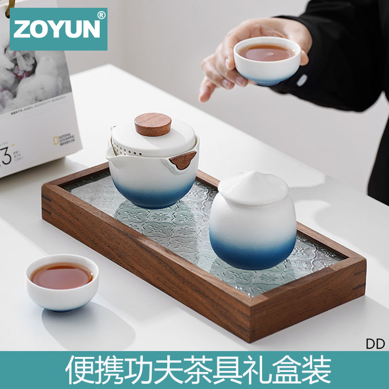 陶磁器茶器旅行黒陶工夫茶器セット快客杯年次総会祝日プレゼントギフトボックス彫刻ロゴ
