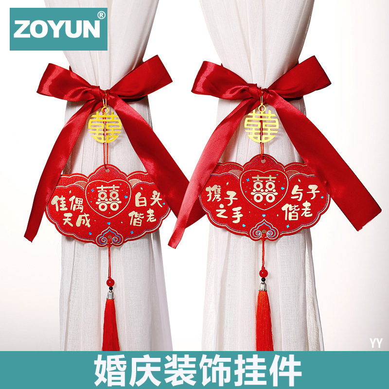 お祝いの結婚部屋の配置用品のカーテンの装飾はネットの赤い新しい部屋の喜字のペンダントの花の結婚式の祝福のペンダントを持ちます。