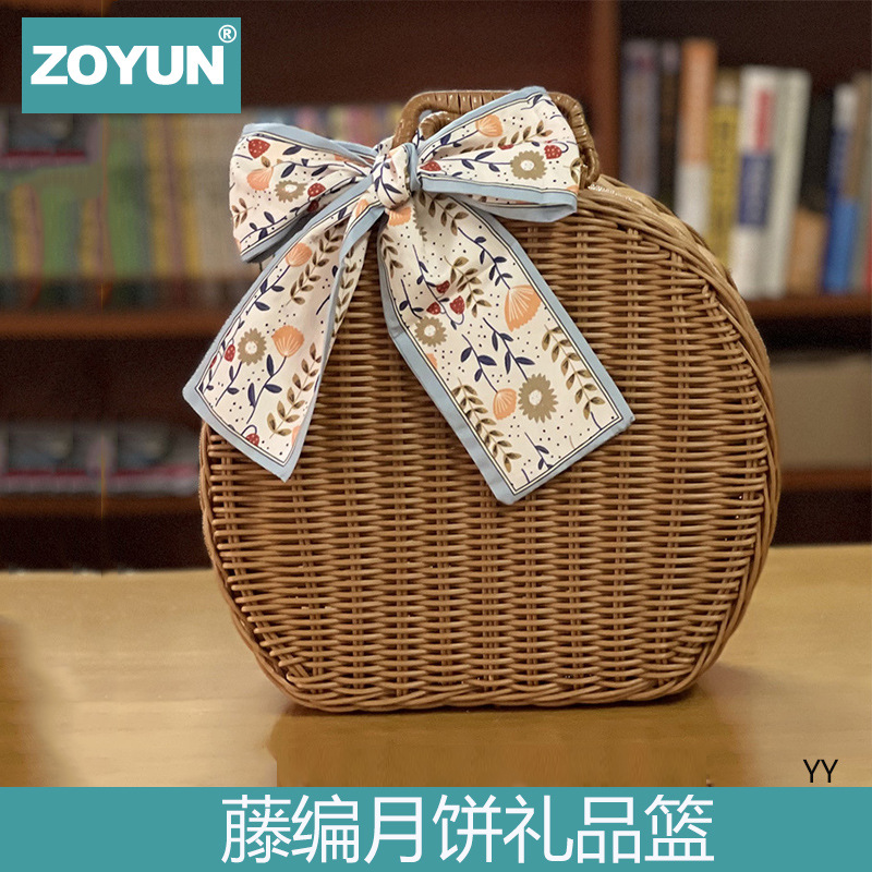 中秋ギフトボックス月餅ボックス藤編喜茶ギフト包装お土産レトロ編み藤編手提げ収納ボックス