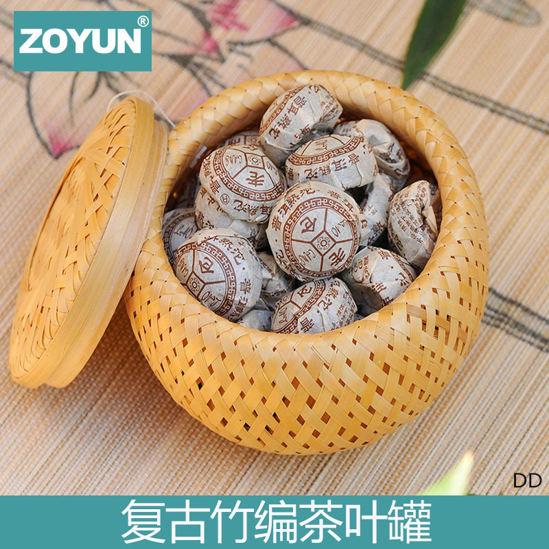竹編みの小さいざるの二重蓋付き収納ケースの復古竹質包装箱創意多肉植木鉢竹編みの茶葉缶