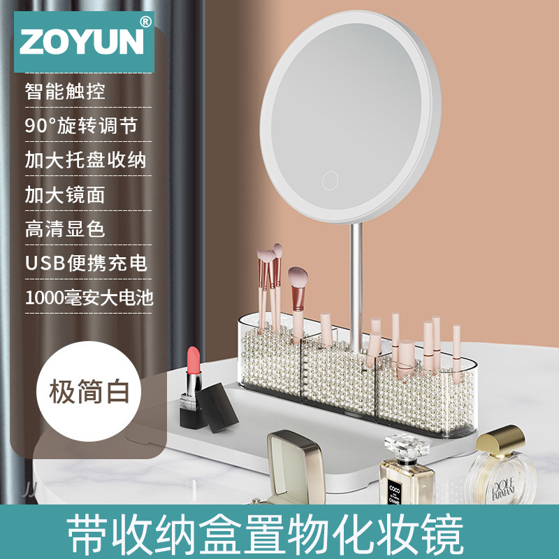 家庭用スマートデスクトップ化粧鏡化粧鏡ledランプ付き収納ケース化粧品棚化粧鏡