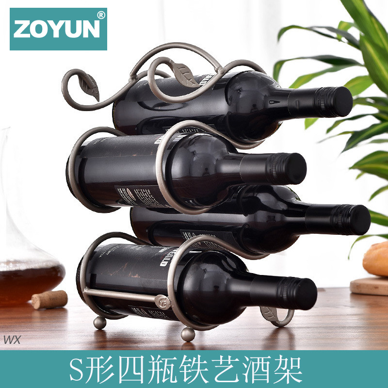 S形四本鉄芸ワインラックシンプルなワインボトル陳列展示収納棚レトロなワイン収納棚置物
