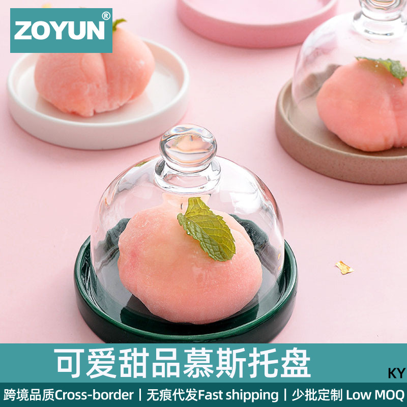 国境を越えたミニデザート皿月餅皿陶磁器茶点トレー透明ガラス蓋ケーキ皿ムース西点皿