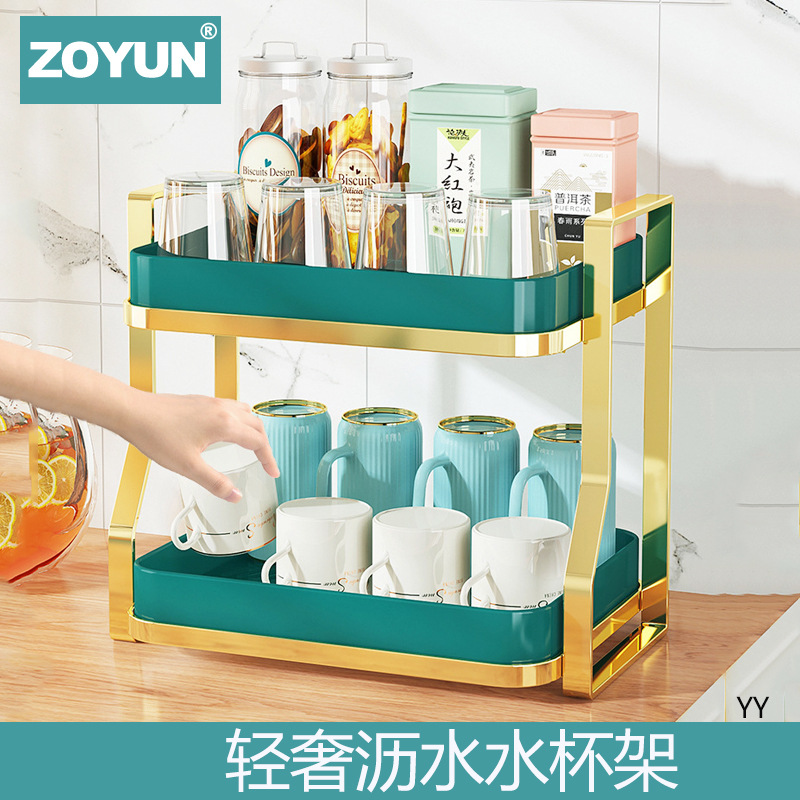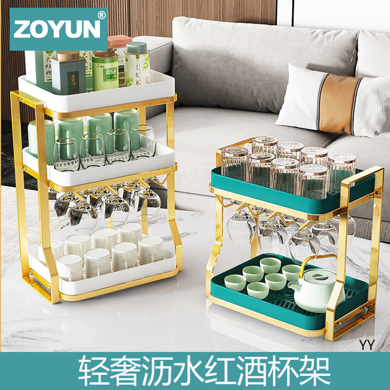 ネット紅の軽い豪華な逆さまはワインの杯の棚を掛けて、水のトレーのお茶の皿の二重の物置のガラスのコップの棚を取り外します。