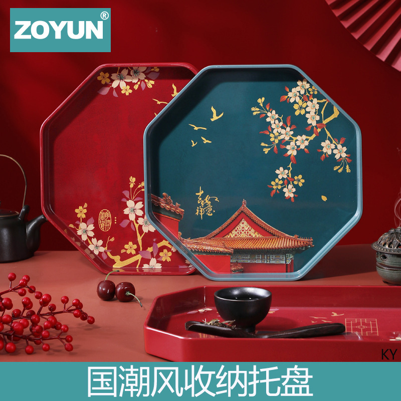 国風創意八角トレー家庭用伝統国潮甜品菓子皿茶皿新年春節宮廷乾果皿