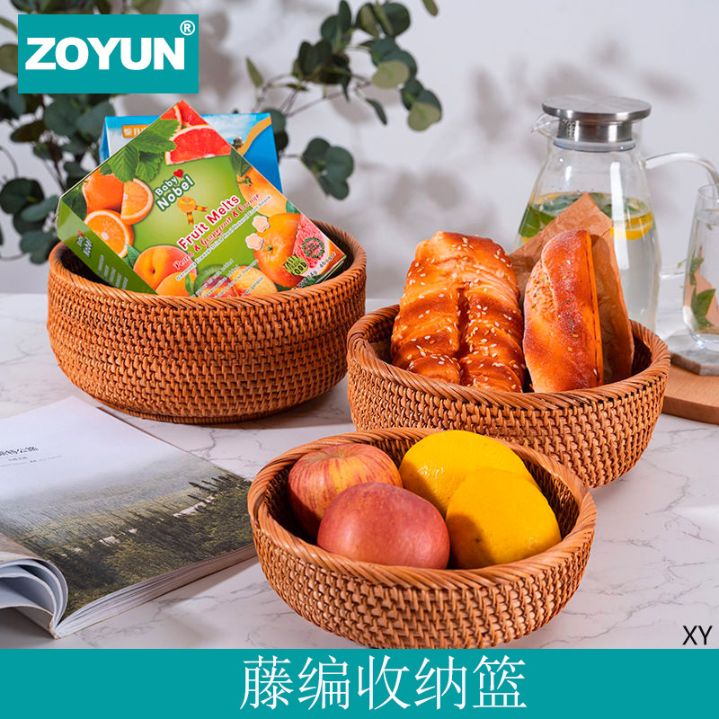ベトナム藤編みバスケット波形ボックスリビングテーブル円形キャンディープレート編みバスケットアクセサリー収納バスケットクロスボーダー