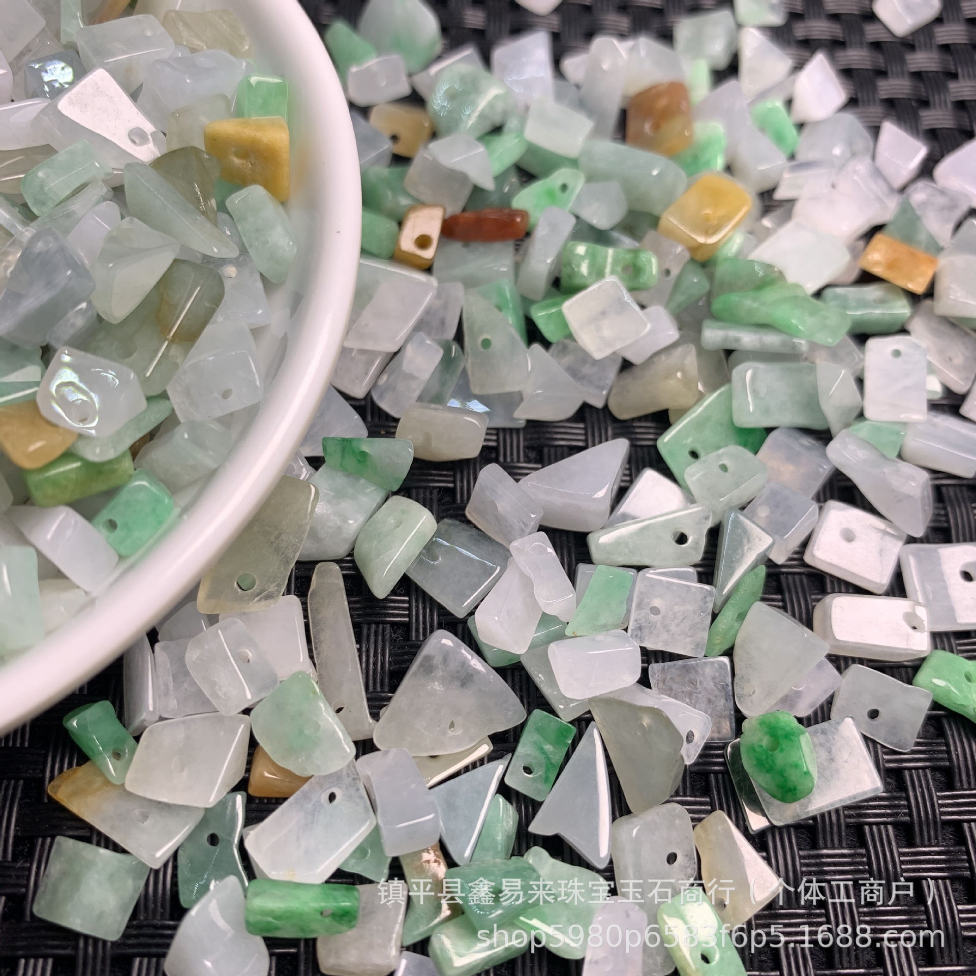 天然ミャンマー翡翠A品三彩玉砕き平安小石石diyブレスレットネックレス玉卸売り