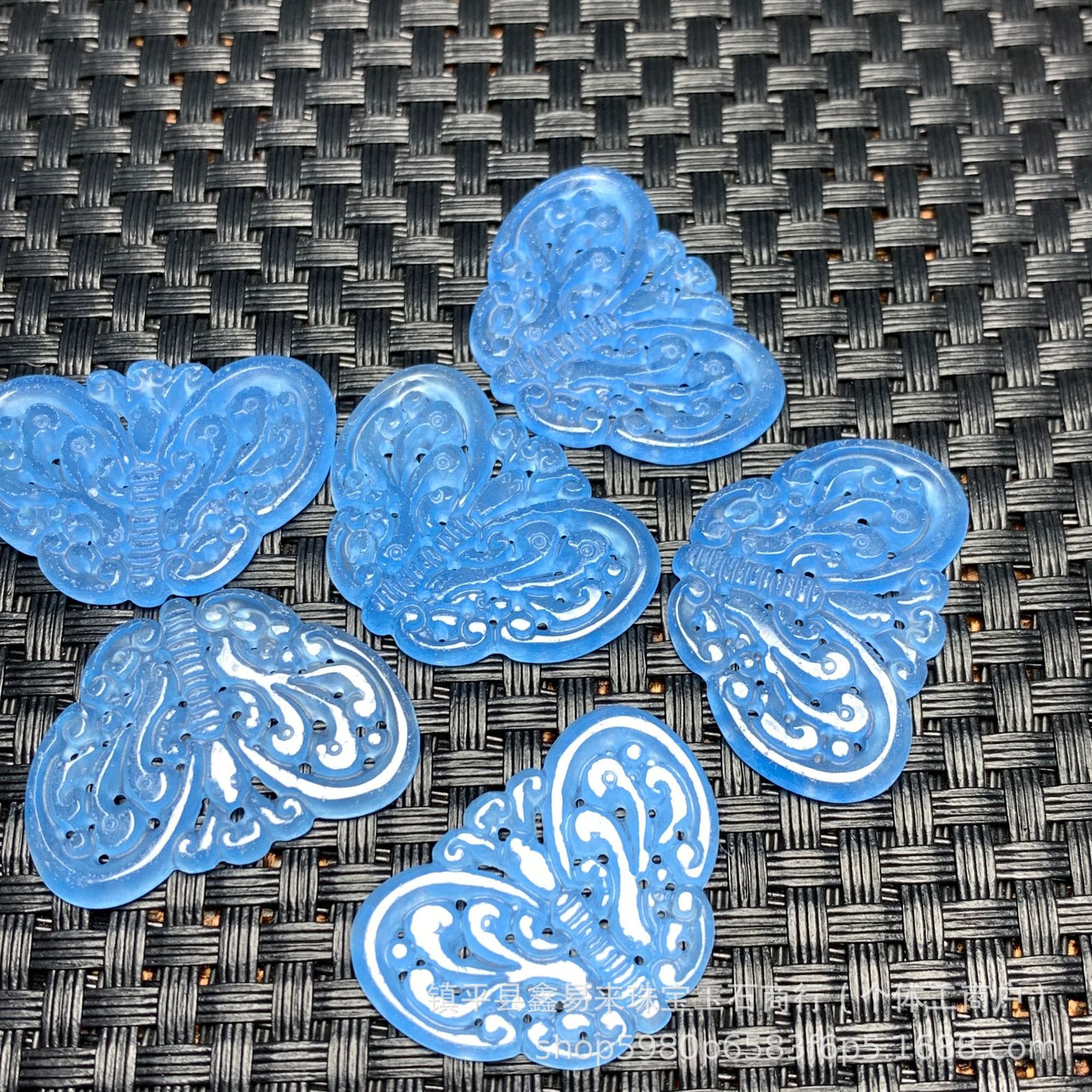 海藍宝透かし彫り蝶イヤリングdiy玉アクセサリーペンダントイヤリング卸売り