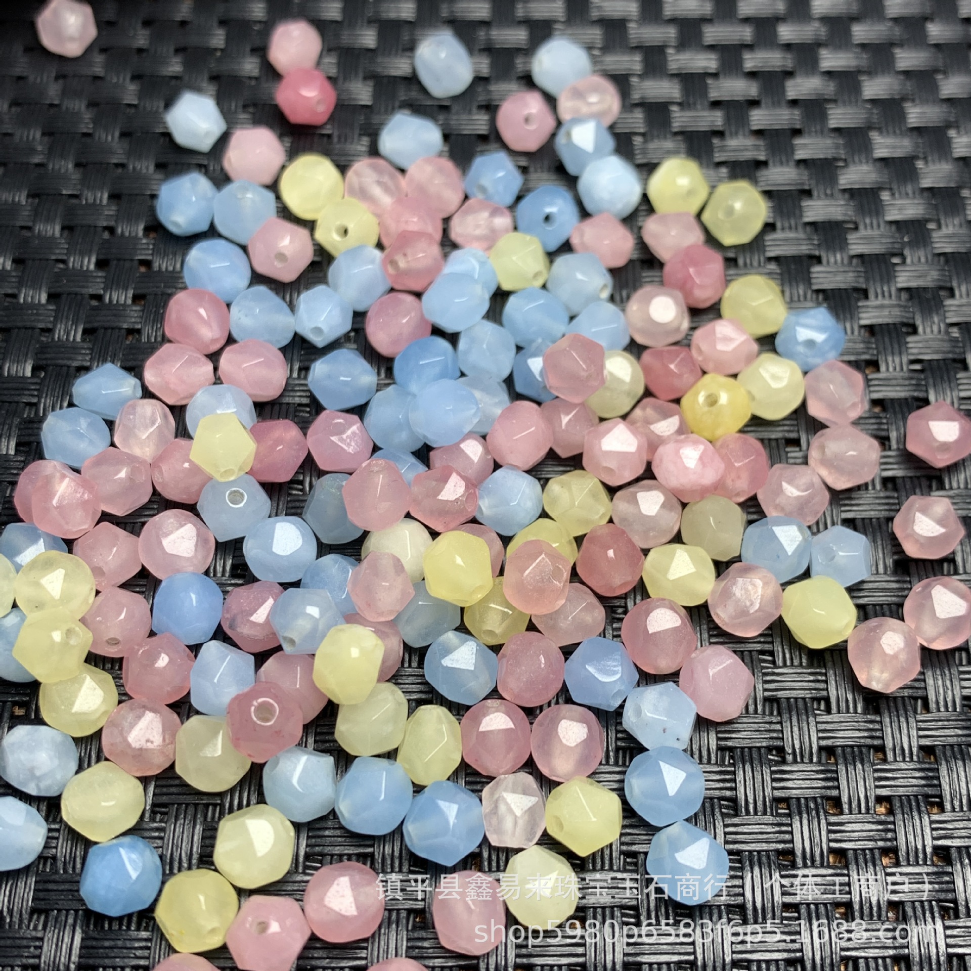 天然三彩6mm多稜石散珠diy玉アクセサリー玉散件卸売り