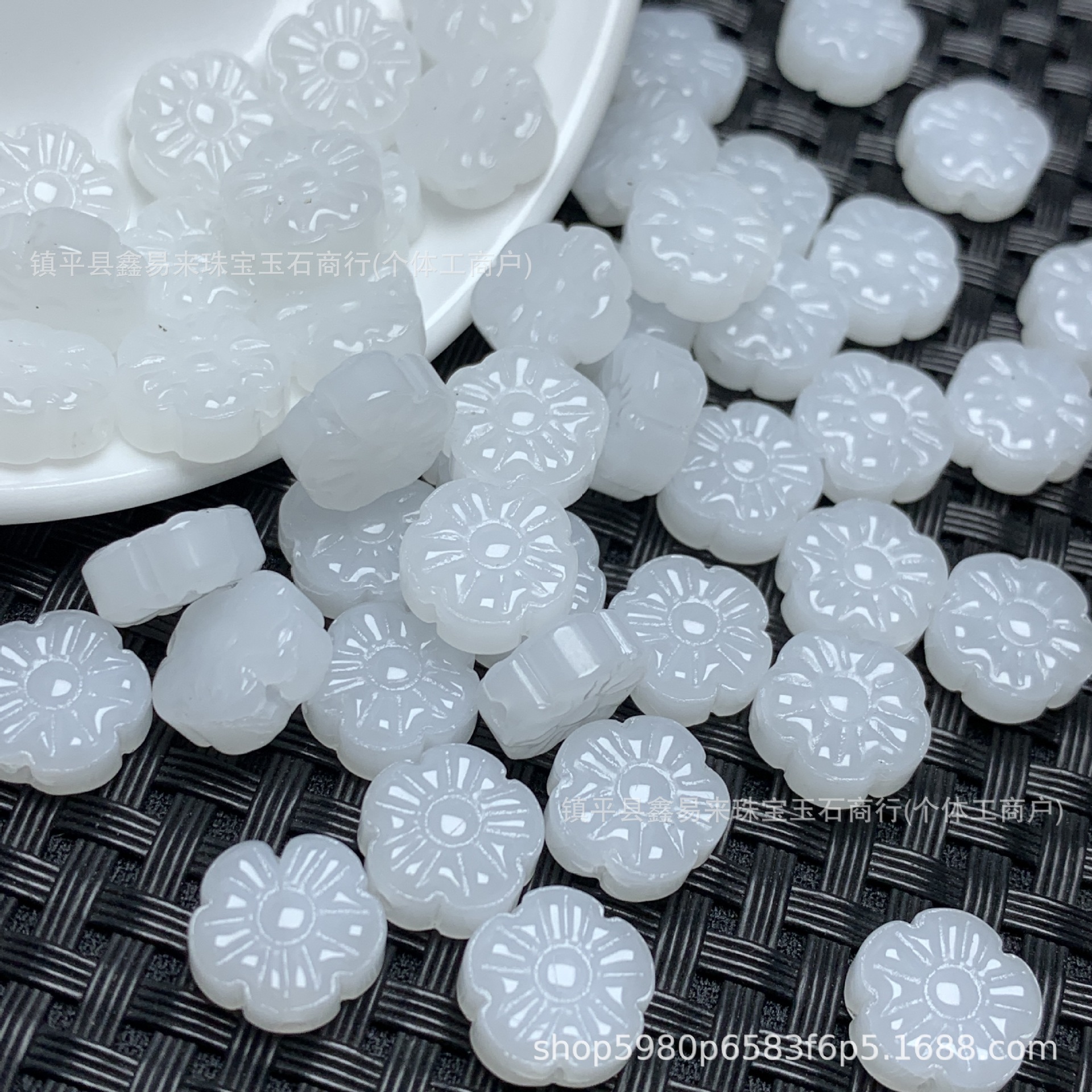 模造玉白い梅の花10mm両面刻印月餅花横穴花diy手作り瑠璃数珠アクセサリー