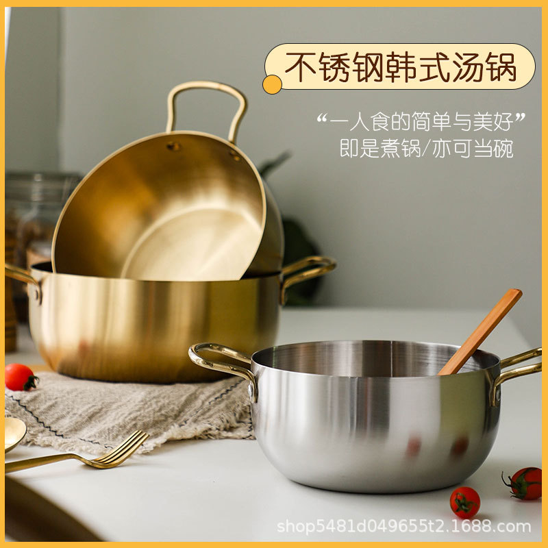 韓国式ステンレス鍋カップラーメン鍋双耳金色ラーメン鍋スープ鍋カップラーメン鍋フライパンミニ鍋海鮮料理