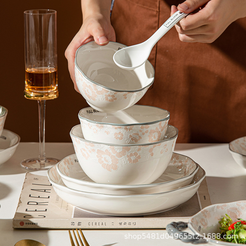 ボウル家庭用2024新型高颜値皿皿陶磁器ボウル個人専用食器高級感軽贅沢皿