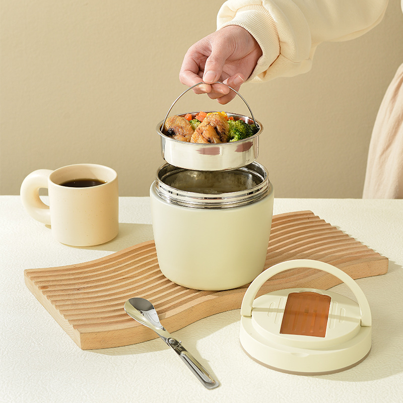 304ステンレス製保温弁当箱 丸型密閉弁当箱 insベージュ 学生・会社員向け弁当箱