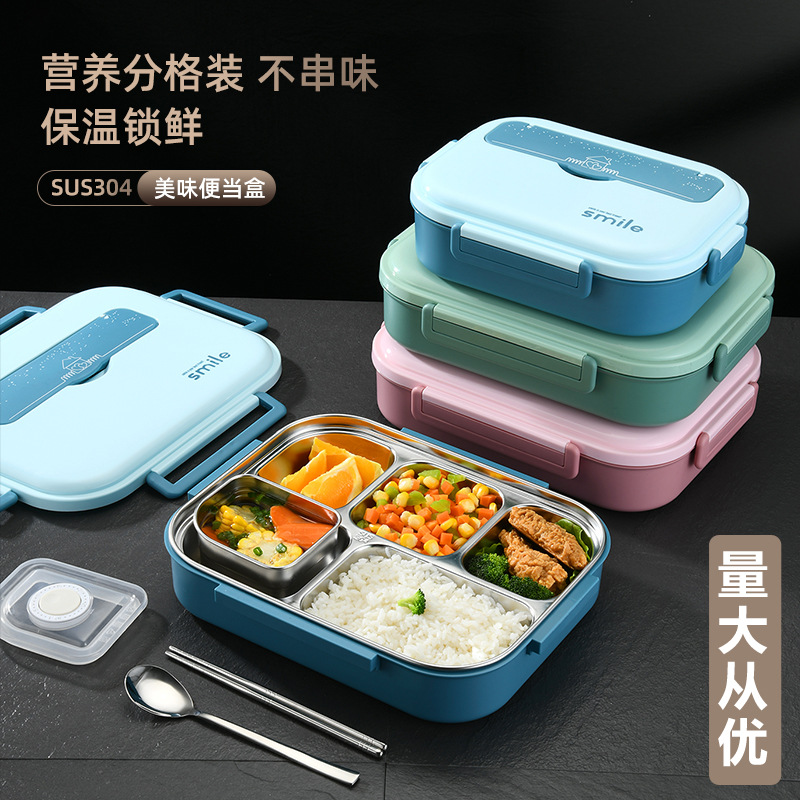 メーカー直販304ステンレス弁当箱学生分格保温弁当箱スープ付き携帯式弁当箱