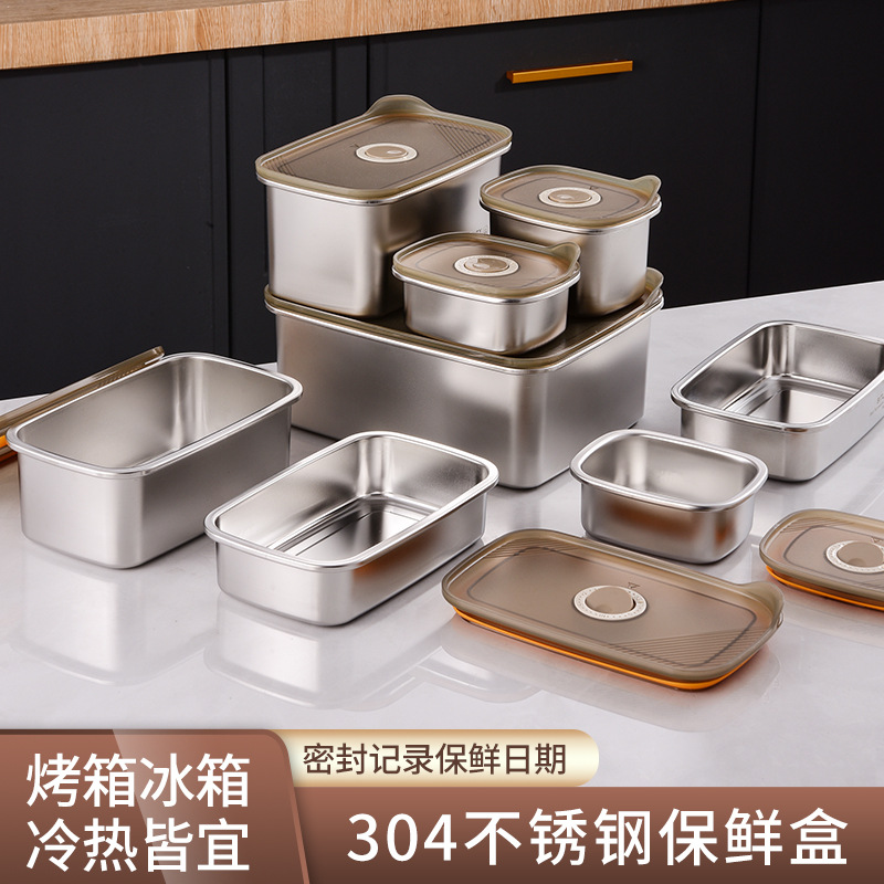304ステンレスシンプル新鮮箱多機能蓋付き密封漏れ防止貯蔵箱冷蔵庫冷蔵収納箱