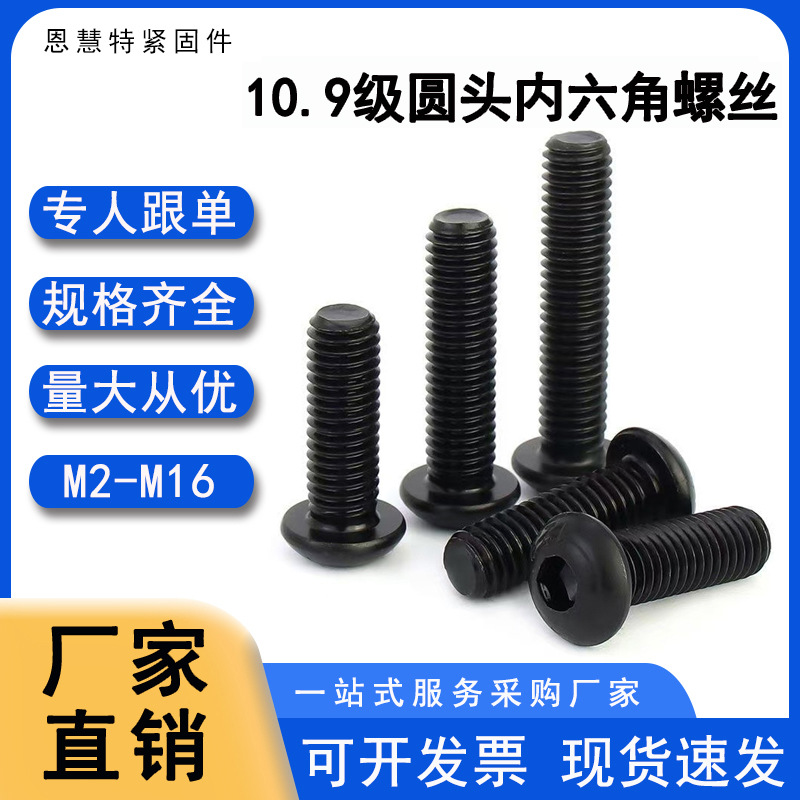 グレード 10.9 丸頭六角穴付きネジ黒 DIN7380 合金鋼丸頭六角穴付きボルト M2-M16