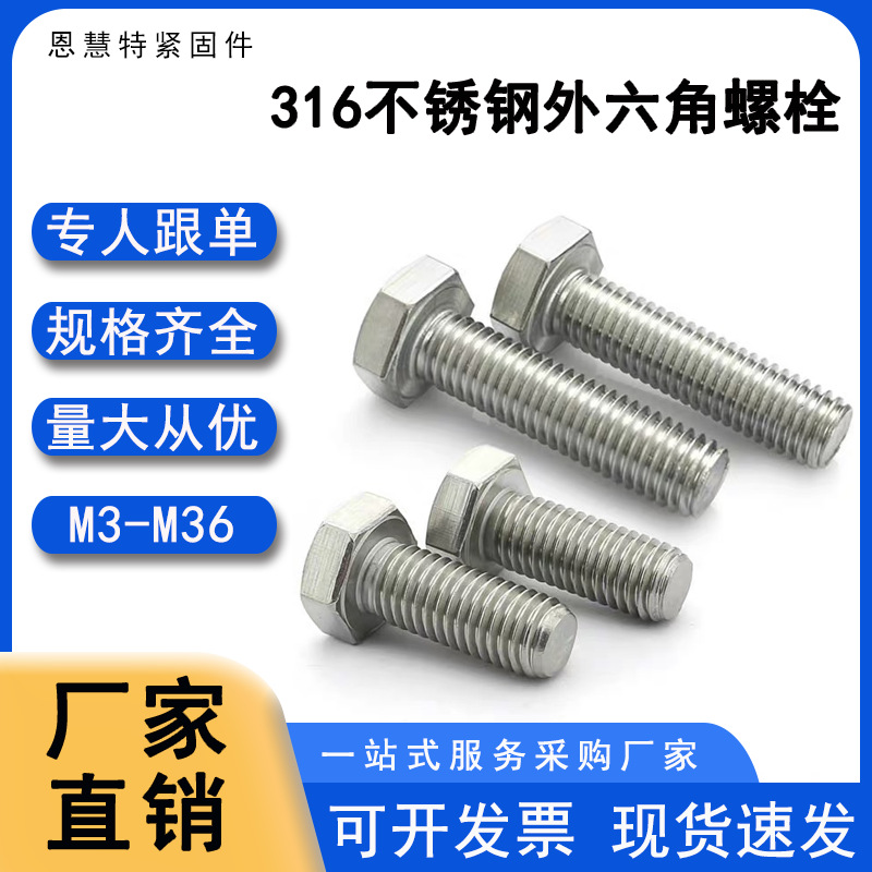 316ステンレス外六角ねじDIN933耐食全歯六角ボルト標準ねじM3-M20
