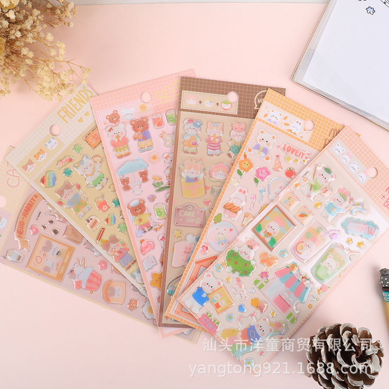 Ytea漫画動物ウサギ熊滴ゴム3d透明水晶手帳日記装飾シールかわいい子供貼り絵