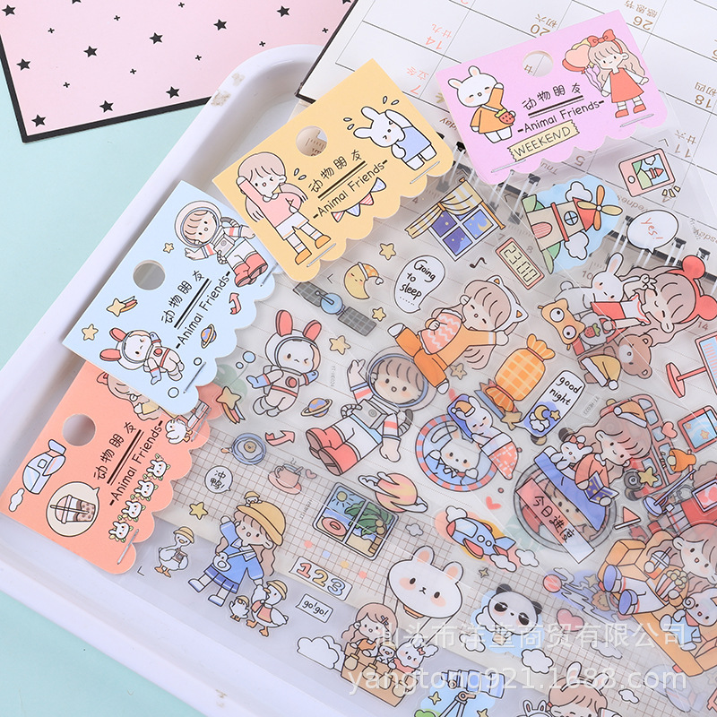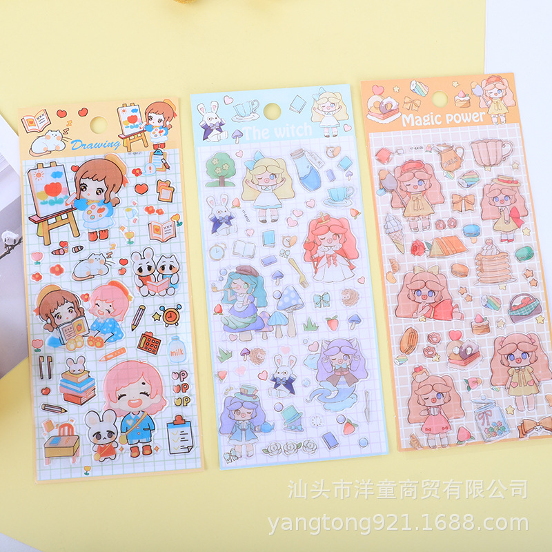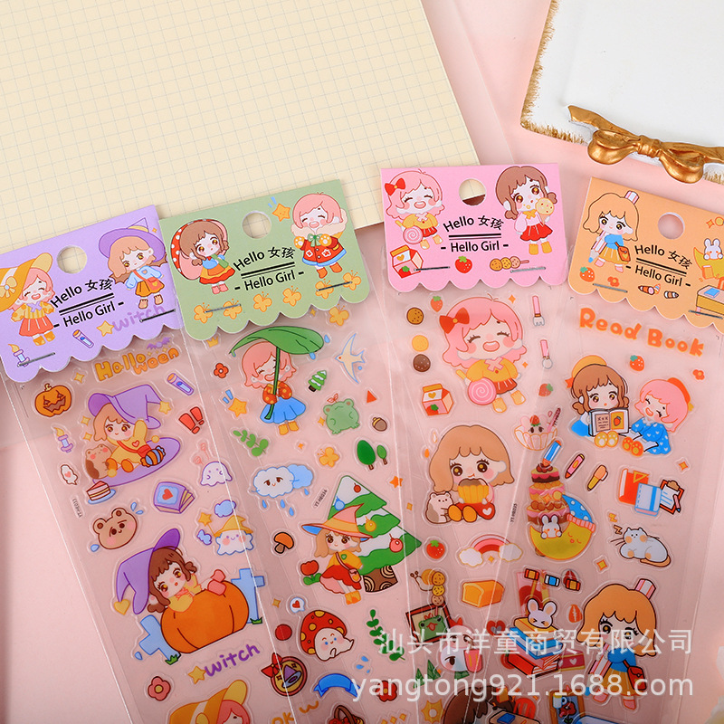 YT-HE漫画かわいい立体長条diy手帳少女日記携帯電話装飾透明貼り紙画卸売り