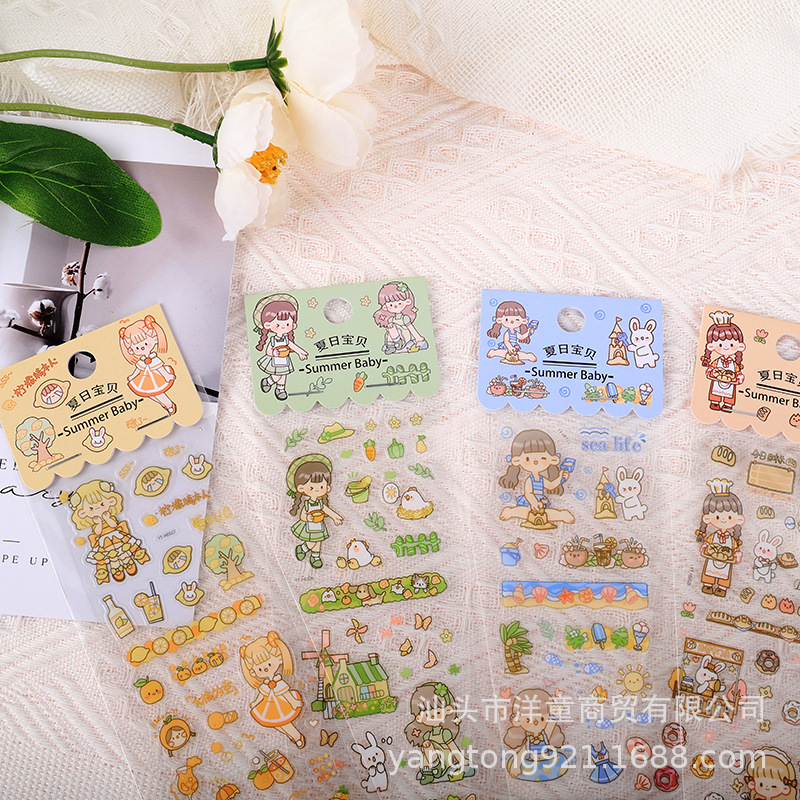 Ytea春祭り立体ステッカー漫画かわいい子供かわいい女の子手帐机装饰透明ステッカー卸売