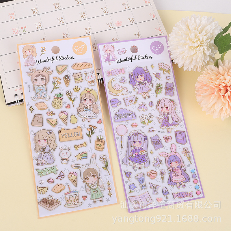 YT-EA立体シールアニメかわいい子供韓国版かわいい女の子の手帳機装飾透明貼り絵