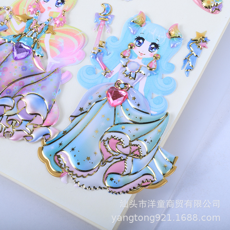 YT-HK水晶漫画プリンセススカートステッカー絵diy立体手帳装飾かわいい透明日記子供奨励